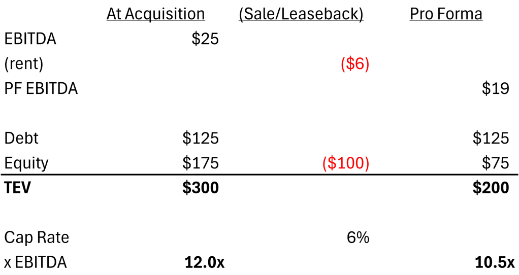 Rough math on how a sale-leaseback can bring down an acquisition multiple